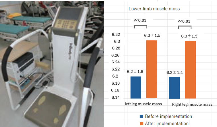 Dr.Matsuo: The benefits include expected increases in lower limb muscle mass and muscle strength. Also, since B-SES is scheduled twice a week with at least one day of rest in between, and appointments are reservation-based, I believe this system has encouraged patients to continue attending regularly.